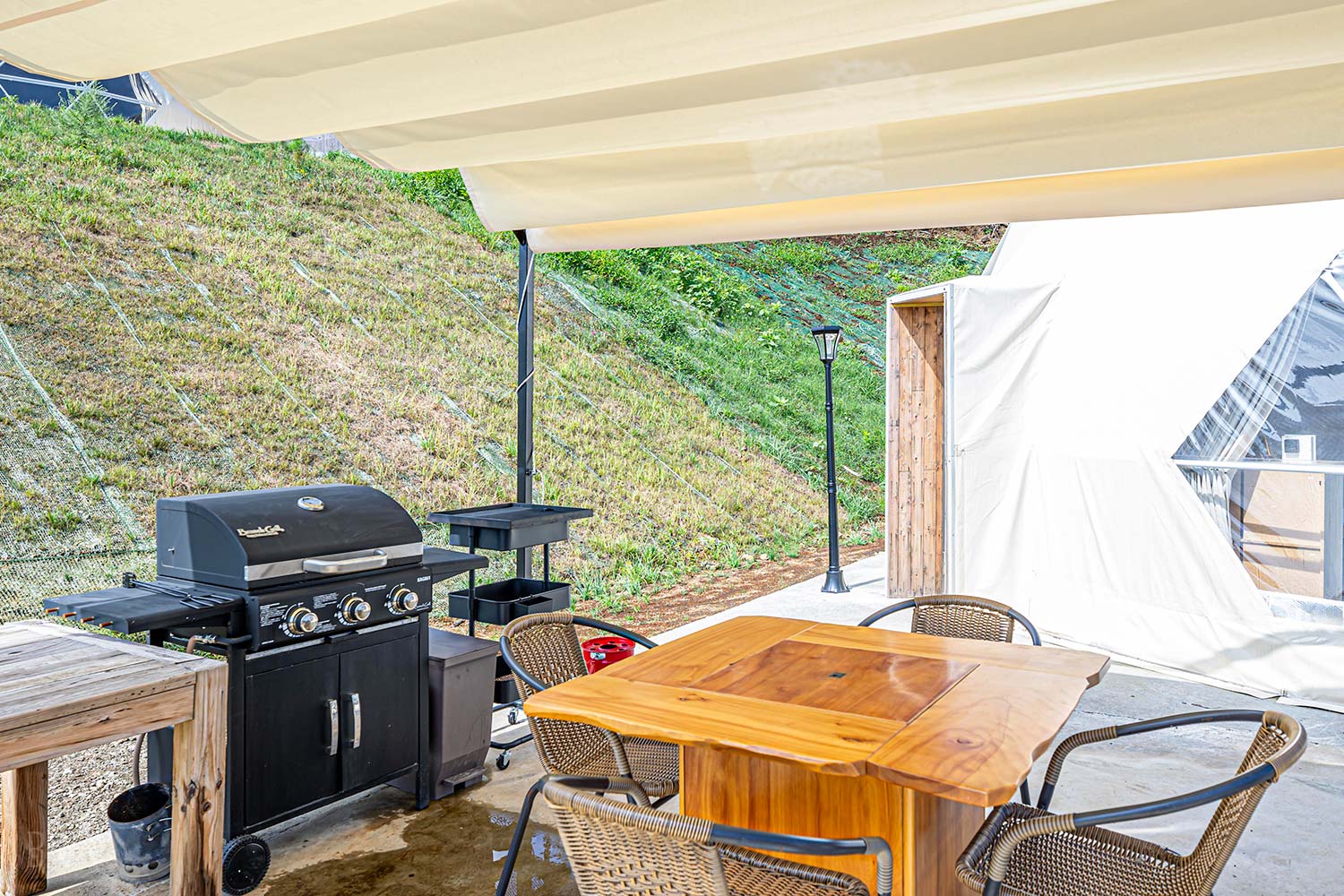 Enjoy a more comfortable glamping experience in a private space.